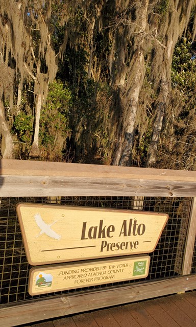 We have been in travel mode since Tuesday morning. After a wonderful visit we left Johnston, SC and our family a little after 8:00 enroute to Gainesville, FL. We had a pretty easy drive south. We drove SC 25 to I-16 to I-75 to Waldo, FL – just north of Gainesville. We stayed in a commercial campground, Dixieland RV Park. This was our first commercial campground in quite a while. Everyone was very nice but we remember why we like COE and state park campgrounds better. The sites are always so close together in commercial campgrounds. We began Wednesday with breakfast at Classic Cafe, a little restaurant at the park. They gave us a 15% off coupon when we checked in so of course we needed to give it a try. We enjoyed our breakfast. It was good but not really anything special. We also did a little shopping, and stopped and looked at some RVs. In the afternoon we visited Lake Alto Preserve and did some nice hiking out in the woods around the lake. The trails were nice and wide, probably so hikers can spot alligators sunning themselves. One of us was happy we saw none. It was a nice quiet day in the preserve. Very relaxing.