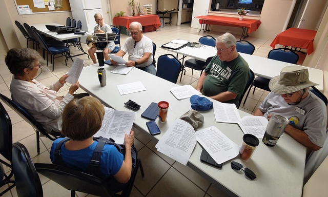 Today was our first day back at work on a project in several weeks. We of course began our day like we do every day regardless if we are working a project, with devotion time. Today Gene and Carolyn shared a little different reading of 1 Corinthians 13, the love chapter. Just a little reminder what’s really important. Carolyn played her french horn for our music accompaniment. Thanks Carolyn and Gene. We discussed our work plans for today and then met another group of volunteers working with the church this week.