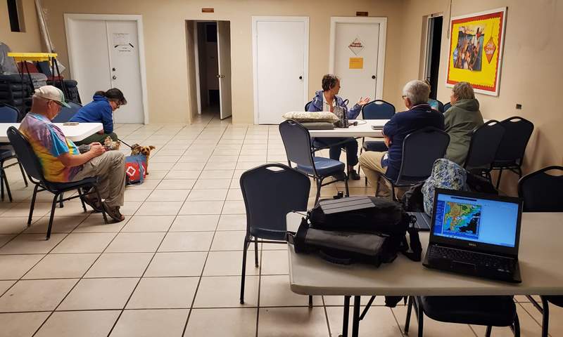 Last night was along night for the team. During our team meeting we learned that our county was placed under a tornado watch. We told the team what to do if we went under a warning and after our work was done we all headed back to our rigs. Max was in storm mode as there was a water spout headed straight toward Key West. Anne went to sleep – for about 15 minutes when we were suddenly placed under a tornado warning. All our team received their phone alerts and all gathered back inside the church as we had requested. Max didn’t think the worst of the storm was going to pass our way and thankfully it did not. When we experience severe weather when we are traveling, we learn how blessed we are with the TV and NWS coverage we have in our area. Since Key West is 150 miles from Miami, the stations there – the closest TV stations – don’t really cover the lower keys. The tornado warning wasn’t canceled until 11:00 but most of the team was so wide awake by then that there was little sleep to be had. Key West received 5.5 inches of rain from the storm and the streets were flooded. We had a lot of rain but no wind damage. This afternoon some of the side streets in Big Pine Key were still under water.