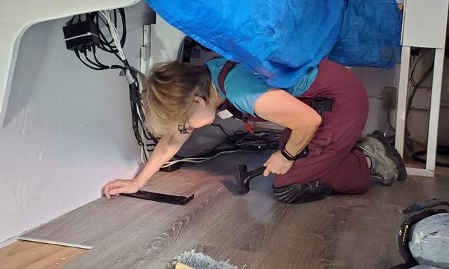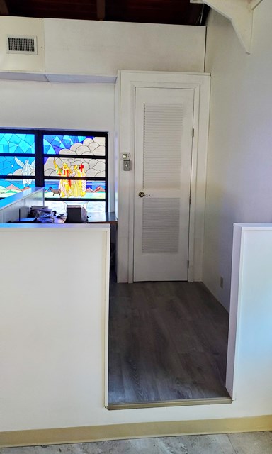 After enjoying our Christmas off, we were back to work today. We again worked at Big Pine UMC to complete or nearly complete some of the items we began on Tuesday. The final row of vinyl plank flooring was installed by Anne, Kathy and Max. We were so close to complete on Tuesday but just ran out of time. The quarter round trim is partially installed. We have a couple of difficult to install pieces remaining to be done. Steve and Larry completed installing the door to cover the HVAC unit after Glenita painted it. Steve and Larry completed the duct enclosure and Kathy cleaned it all and she and Elaine put on a coat of paint. Max had to make one more trip to Home Depot on Marathon Key for the trim. Elaine and Glenita also did more repainting of the exterior doors of the church. The dark green paint takes a real beating in the hot Florida sun. There was also a good deal of caulking in various spots around the church. We hope the church members enjoy the sprucing up and completion of things begun by others. We enjoyed having the team all together for two days. Next week we plan to get back to working on various homes.