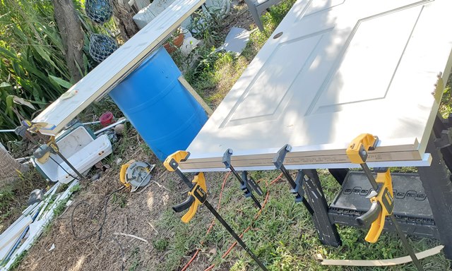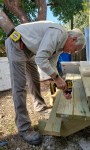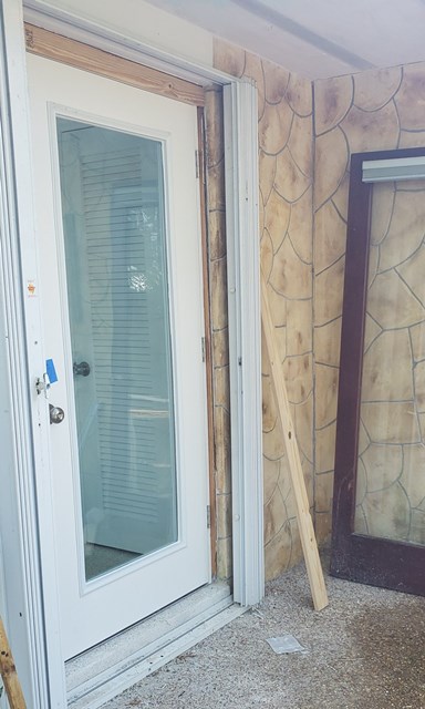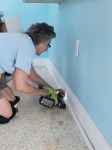 After completing the work at Bob’s house, Max and Jim joined the rest of the team at Dennis’s house back on Big Pine Key. There, this morning Anne, Sue and Virgie sanded the bedroom and applied a final coat of mud for areas needing a little touchup. Dan and Dennis worked on installing the closet doors in the back bedroom. After lunch Max and Jim worked on installing the back bedroom door. Dennis will finally be able to close the door to his bedroom for the first time in two years. Dennis and Dan completed the closet doors. Sue began the cleanup in the first bedroom in preparation for priming and texturing next week. Anne and Virgie painted a door and trim. It was another busy and productive day. A good way to end our NOMADS work week.