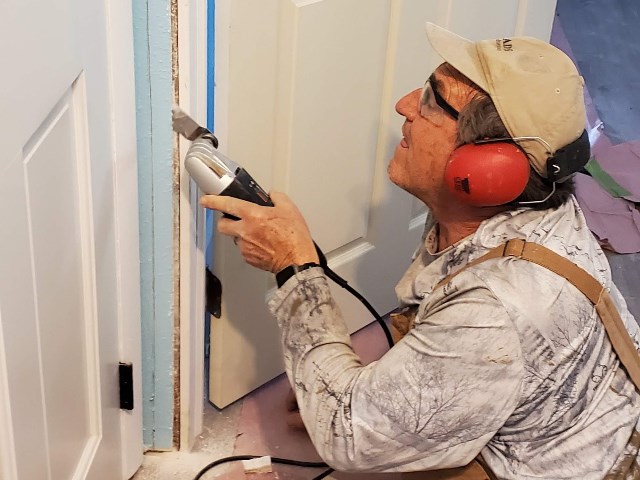 We all headed to Dennis’s this morning and made a lot of progress trimming doors and windows and getting the front bedroom ready to texture tomorrow.