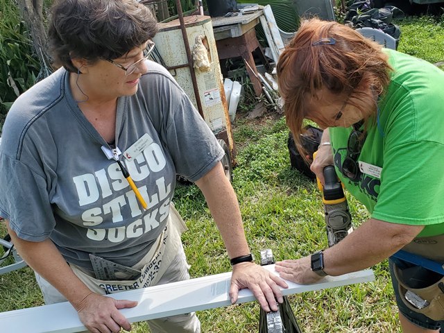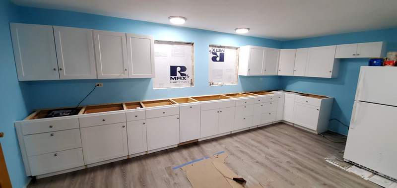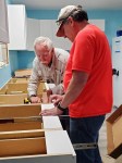 It was another busy day at Dennis’s house today and we again accomplished a lot. We are really enjoying our current team and glad we have had a few days for us to all work together. We are at that stage where you can really see the house coming together and beginning to look like a home. Max and Mark completed the installation of the cabinets today. They also installed the rim to enable the counter top guys to measure, and install the counter top. Hopefully that will occur next week. The kitchen looks so good even without the counter top. When we left for lunch today, Dennis was just sitting in the kitchen admiring his cabinets with a big smile on his face. Lisa and Sue completed the window trim in the living room and then worked on the caulking. The window trim adds so much. Great job ladies! Dan and Jim repaired the concrete slab in the front bedroom, installed some doors and Jim installed lights in the closets. Anne and Virgie painted doors, trim, and the front bedroom and closet. The closet and bedroom ceiling are complete and the bedroom walls are close. It is such a blessing for us to watch Dennis as he sees his house getting closer to completion. It’s made better because he now talks about how God sent us to him. He now gets why we do what we do. Such a blessing to us.