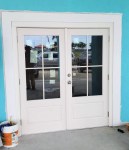 After devotion, the entire team went back to Dennis’s house. Anne, Sue and Lisa began preparing the bath room for texture, covering everything with plastic that needed protection. They then mixed the drywall mud, set up the air compressor and then filled the texture hopper for Dennis. He really enjoys texturing the rooms in his house. As with the other rooms we textured the ceiling and walls and then doing knock down on the walls. All went well and Dennis was please with the results. Then Anne did the knock-down while Sue and Lisa went back to Atlantis to complete the trimming of the downstairs double doors. Max and Mark spent most of the day working on the drain problems at Dennis’s. The also go the installation of the bath vanity completed. The ladies also worked on the drywall at Atlantis again today. It has been another busy and very productive week.
