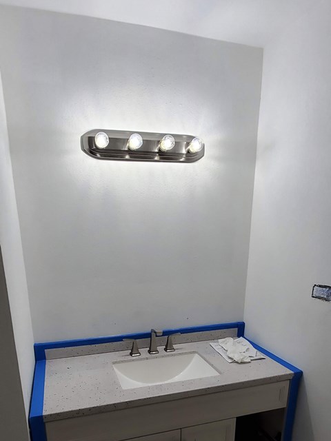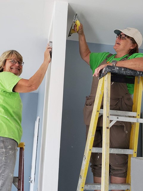 It was another busy day. We started by leading our devotional time this morning and then reviewing our work plans for the day. We all headed out to Dennis’s and so Barb and Bill and Reid and Anita could meet Dennis and see where we stand there. Then Barb and Lisa went to Atlantis to continue the drywall finishing and caulking of the door. Anita and Anne worked on painting the ceiling and most of the walls of the bathroom. Reid worked on plumbing and shelving for the bathroom linen closet as did Bill. He also installed the bathroom light fixture and wired in the plug for the stove. Mark worked on plumbing all day. Max went between the houses making sure everyone had what they needed and made a few trips to the store for supplies. A number of items were marked off our punch list today. It was the first day with a new team and often it takes some time for the team to start to mesh. This team, with a good deal of experience, went right to work and accomplished a lot today.