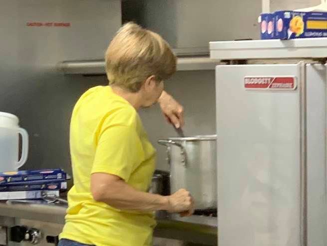 A work day for Constructors for Christ begins at 6:00 am. Breakfast is around 7:30, lunch around 12:30 and we stop work at 6:00 pm. All three meals are provided each day. They are prepared by team members who choose to work in the kitchen instead of on the construction site. Those members are divided into three teams and each team prepares one meal a day. Today Anne and Debra’s team prepared lunch. Every meal is always delicious. Usually the team members prepare desserts but the members of the congregation at Pine Grove are providing those this year