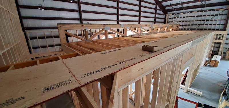 By the end of today we had the balcony floor joists in place and 4 of the 5 truss beams sandwiched together.