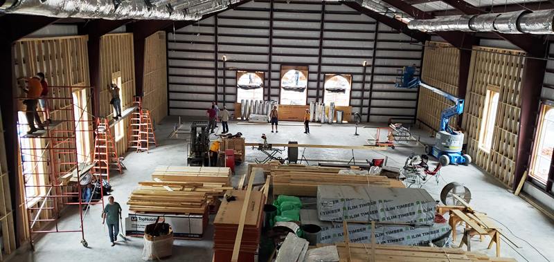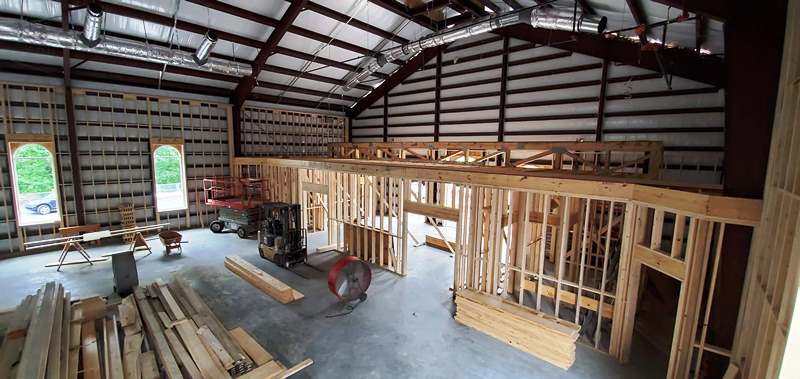 Out on the constructions site today was much like yesterday. Some worked on installing fire blocks in the walls, some worked hanging and mudding drywall and some built corner posts and t-posts for the interior walls. Today we started building and erecting the interior walls. Another productive day in God’s service.