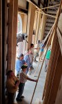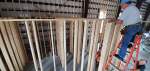 The crew raised all the first floor walls on the ladies restroom side of the building.