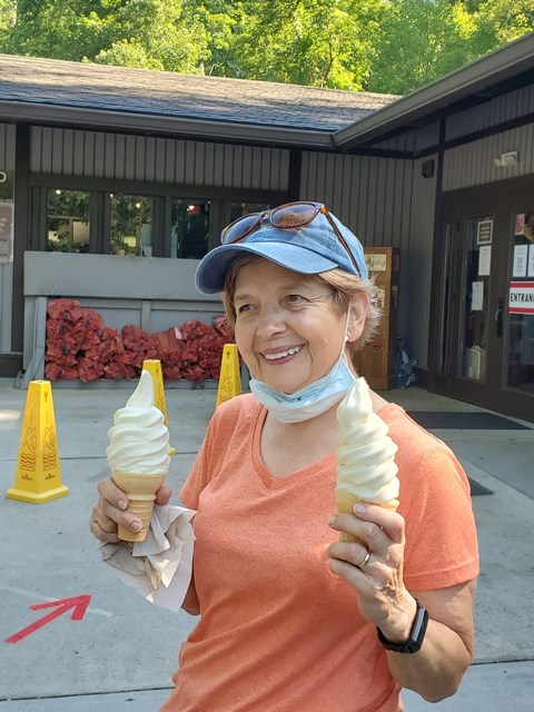 We have hiked various trails in this area of the park and driven through the cove many times but today was our first trip through the cove on our bikes. It was a great, although challenging at times, ride. You can’t ride or hike in Smokey Mountain National Park without climbing some “hills.” The ride started out in heavy fog but cleared as we rode and by the time we completed the ride and got our traditional Cades Cove ice cream cones. It was a beautiful day, even with the fog.