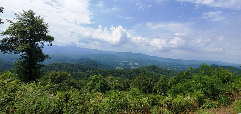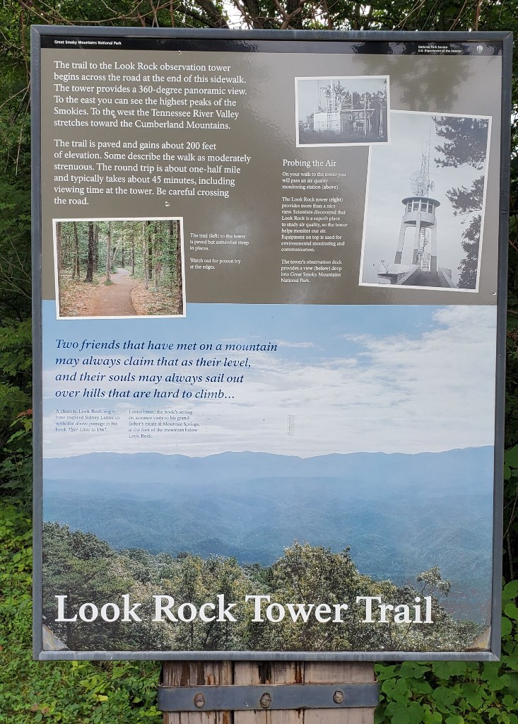 Today we decided to allow ourselves to sleep in and have a leisurely breakfast at home rather than the protein bars we have had the past two days. We also had to make some calls regarding our next travel plans and do some other work. Mid-morning we headed out on a road trip on the Foothills Parkway. Today we drove the southern most portion from Chilhowee to Wears Valley. There is another 5 miles of it on the northern end that has been completed and then a 33 mile incomplete section in the middle. The Park Service has the right of way but the funding is not in place to complete the project. Guess what. The project began in 1944. The drive is beautiful. It reminds us of the northern portion of the Natchez Trace. No commercial traffic is allowed so it is a peaceful and slower paced drive. We stopped and did a little hike up to Look Rock Tower, and enjoyed many scenic overlooks. It was a good day in the least crowded place we have been around here.