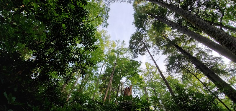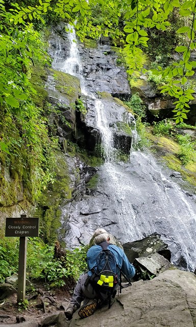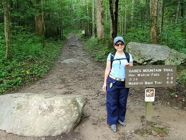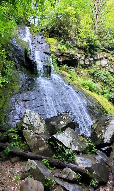 Today was a beautiful day in the Smoky Mountains. We were again up for an early morning hike. This time we drove over to the Cosby area of the park, about 45 minutes from Fred. This is a less used area of the park, being further away from Gatlinburg. We decided to hike to Hen Wallow Falls by way of Gabes Mountain Trail and were on the trail by 7:30. If you want to know how it got it’s name click here. Round trip is 4.4 miles and is considered a moderate hike. It is 2.2 miles of up the mountain hiking. It’s a steady upward slope all the way but there are those areas that are much steeper. The trail has lots of roots to challenge the balance. The payoff is a nice 95 foot water fall. The great thing about this hike was that we had the entire trail to ourselves. We saw no one else until we arrived at the falls where there was a single female sitting reading a book cooling her feet in the water. It was awesome. We stayed at the falls for probably 30 minutes taking videos, pictures and just sitting admiring God’s handiwork and no one else arrived to disrupt the tranquil setting. We were probably 20 minutes back down trail before we met other hikers. There were beautiful views throughout the hike with smaller waterfalls and beautiful forest. After returning to the trail head and having a sandwich we walked around the “closed due to Covid” campground just to see what it was like.