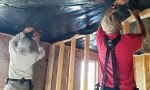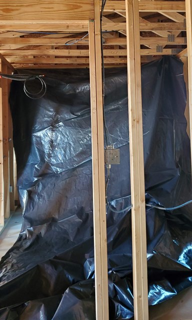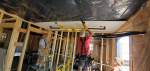 We had fog and heavy dew this morning and cooler temperatures. Like most mornings, we walked before work to get some good exercise before it was so hot. The dew changed our work plans a bit. The foam that goes under the roof ridge arrived yesterday afternoon and we had planned to complete the roofing project in the cool of the morning. However, the roof was too wet and slick! That’s okay because we are flexible. We completed the installation of the vapor barrier in the ceiling. By then the sun had dried the roof and we were then able to complete the roofing shortly before lunch. We spent all afternoon installing drywall. We completed one of the offices and started on the second. It was a very productive day and we should all sleep well tonight.