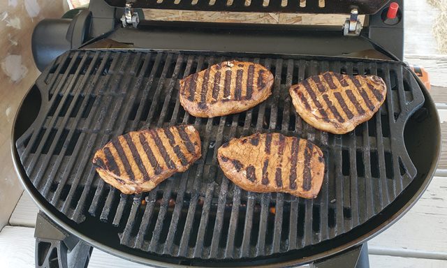 Grilling pork chops. We ate two as soon as they were done and saved two for the work week.