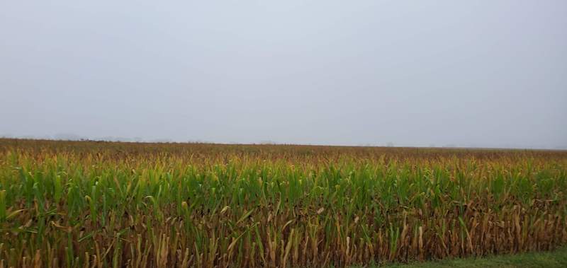 Drywall mudding and finishing is all we did today and we figure y’all are probably tired of pictures of that. So here is a picture from our foggy morning walk. There are many,many acres of corn and soybeans growing in the fields around MMDC so that is what we see when we walk.