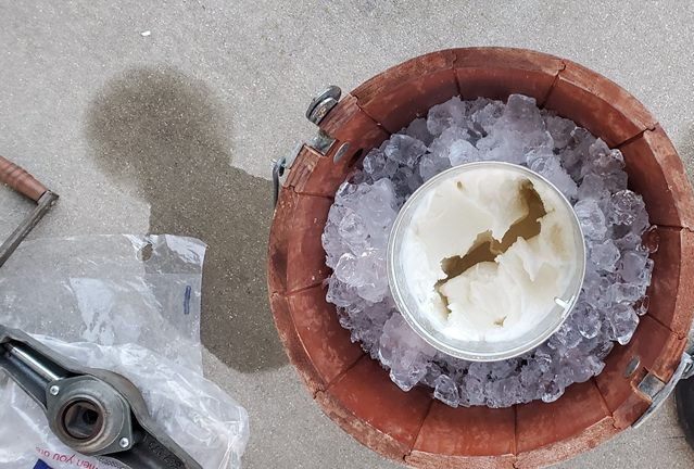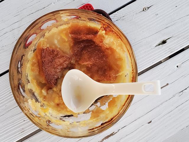 At break today Gary volunteered to make homemade ice cream for us after work. We offered to bring some frozen peaches to go on the ice cream, but they somehow became a peach cobbler. Thanks, Gary, for the ice cream and the fellowship.