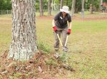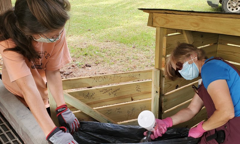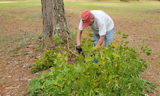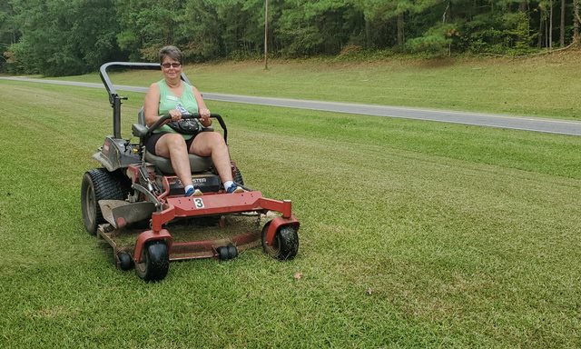 What a wonderful fall day we had today! There was a breeze most of the day. The sun was shining brightly. It was still a typical humid Alabama day so it was a little hot when we were working hard but such a wonderful day. This project will be different from all the others at Sumatanga. Don’t guess we should expect anything else since it’s 2020. This year we will not have a “major” project. We will be working around the camp trying to help catch up some of the routine work. Most of the staff has been furloughed due to COVID and no events taking place at the camp and only one person working in maintenance so there is much to be done. Today we worked in the day use area around the lake and campground cutting grass, picking up limbs, trimming trees and shrubs. That area of the campus already looks so much better. We all enjoyed working outside together. It’s going to be a fun week.