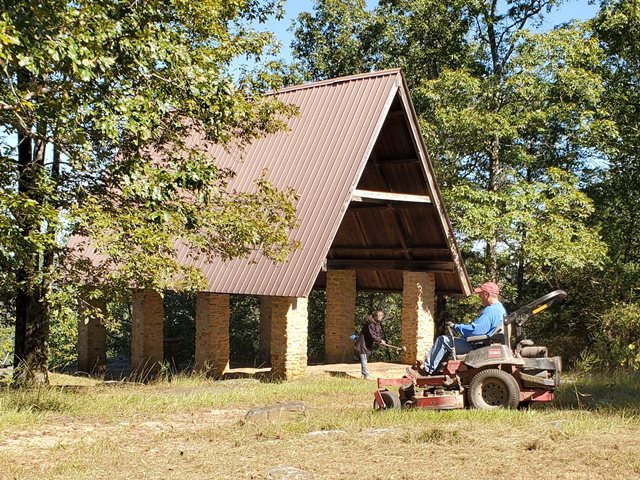 Since there is a wedding scheduled for Friday at the chapel on the mountain above Sumatanga, our priority today was to clean up that area. No one has been to the top of the mountain since March so everything was very overgrown. There were downed trees blocking the two-track gravel road. There were many branches leaning out over the road. You could not get through without them rubbing against your vehicle. Dead branches were on the ground, as well as all the grass being extremely tall and thick. It looked very overwhelming as we drove in off the main road. Our first assessment was it was at least a 3-4 day task and we only had two days. It was really sad to see the camp in such a state. After a few moments of looking around and shaking our heads, we just got to work. We had nine NOMADS plus Stephen, the maintenance department, helping. Two NOMADS stayed at camp to continue the painting. By this afternoon the place was transformed. Totally amazing! We will still have a little work to do tomorrow when we take the tables and chairs up the mountain. Everything is looking so nice and the view from the Chapel down into the valley is just as beautiful as ever. We are very tired tonight.