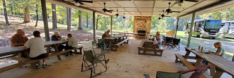 Thursday the pastor at Gary and Sharon’s church in Snead, AL came for our morning devotion and served the team communion. It was a sweet time. Thursday we also cleaned out the kitchen in the lodge of out-of-date food and did some cleaning. Then in the afternoon we returned all the tools, mowers and the tractor to the maintenance shed. Sumatanga provided a wonderful barbeque lunch for us at the pavilion.