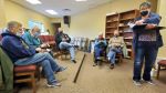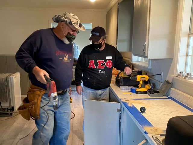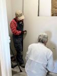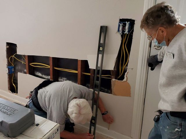 After our morning meeting we all headed to our first work assignment. It’s a house in the same neighborhood we worked in 2017, a neighborhood of small older homes many of which were flooded. A lot of work has been done on the house but there are still a number of things to be done. There are a lot of drywall repairs needed because there were electrical problems and the electrician had to trace looking holes cut in the drywall, but we began the repairs today. After looking over the entire house and work needed, we all began working on different problem areas and made some nice progress today. We are hoping to complete the house this week but we will see. All the drywall repairs will require taping and mudding and then time to dry between coats but with nine NOMADS working…