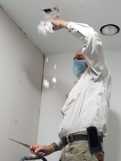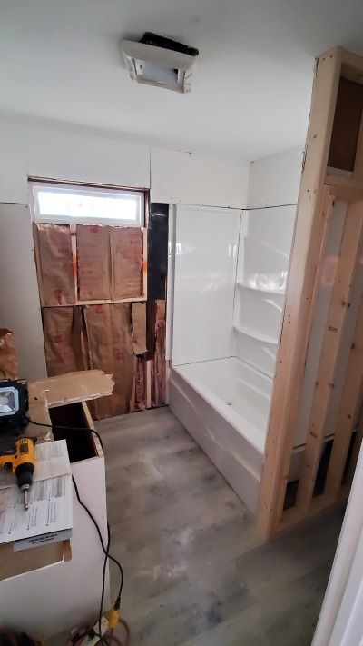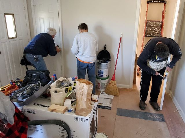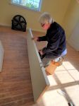 We all went back to our job site to continue working on our various projects. Anne spent most of the day finishing drywall – lots of tape and mud. Max and Tom installed the dryer vent and installed the trim for the kitchen counter as well as completing the installation of some bi-fold closet doors. Jim and Gene completed the carpentry portion of the bath, and Mary Ann began finishing the drywall. More tape and mud. Betty also played in the mud with us today, working in the laundry room, closets and living room. Stel, Mary Ann and Jim all worked on installing base at different times today. Stel and Jodi also worked on doors and Jodi, as always, was there to help everyone with whatever we needed. We have gotten so much done. We still need to complete the drywall – maybe tomorrow – and then lots of smaller items. When the drywall finishing is complete, Daryl, our construction superintendent, will spray an orange peel type texture to make all the new drywall match the rest of the house. Then we will be painting and cleaning. We really need to get this homeowner back in her home. In January she will have been out of her home for three years! It’s really sad that long term recovery takes so very long. We are hopeful that she will be in her house before Christmas. The volunteer portion will be complete by then, but the final electrical and plumbing will also have to be completed by the subcontractors and final inspection by the city.