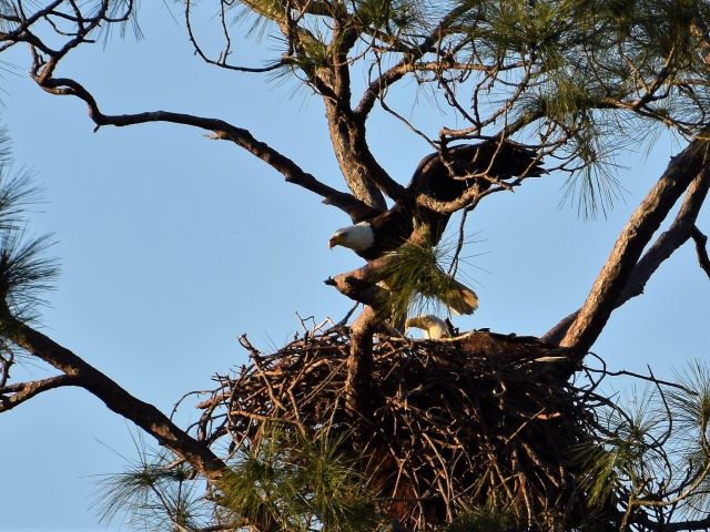 We enjoyed our time at Eastbank Campground on Lake Seminole and hope to return sometime. The weather warmed up each day and there were beautiful sunsets most evenings. The campground reminded us of state parks. Sites were a little close and in the A loop where we were are gravel instead of asphalt, but very level. There aren’t many trails but hiking over to the dam could be done through the woods or by road. On Saturday, our first hike to the dam, we rounded a curve and there was a beautiful eagle with a fish. It immediately flew, with his fish. Of course, we did not have the good wildlife camera with us, only our phones and didn’t get a good pic.