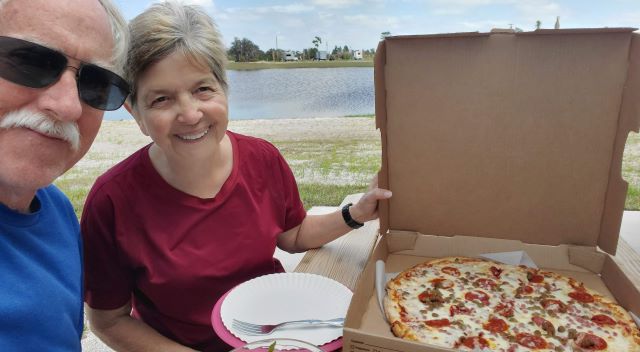 Since we didn’t need to be in line for a shot today, we got to have fun in Gulf Shores. Walking in the sun and sand, eating shrimp and riding our bikes to the eagle nest makes for a great day! After a very frustrating day yesterday, we really appreciated today.