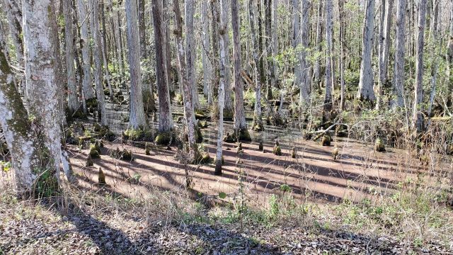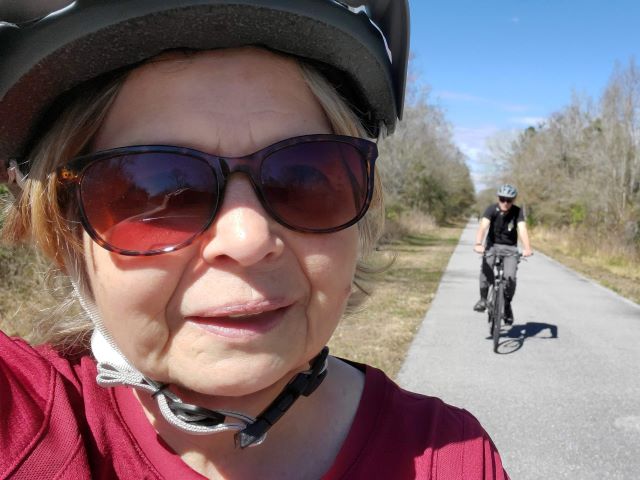 The weather forecast was iffy for the weekend but Friday was predicted to be the best day. We chose to drive about 30 minutes north to Polk City where the southern trailhead for the General James A. Van Fleet State Trail begins. It is a 29 mile paved rail trail which is also designated a National Recreation Trail. This is Florida so the trail was basically flat and only has one curve and it’s on the northern end so we didn’t even see it. We rode through swamps with lots of cypress trees, pine forests, and cattle ranches. We road the first 10 miles, so a total of 20 miles for the day. Good exercise, on a beautiful day, and not too many people on the trail. It was a great ride. We also enjoyed the drive – went one way and returned another – seeing more of this central part of Florida. And, of course, we stopped for ice cream on the way back.