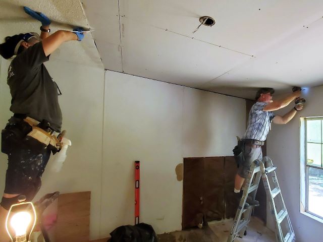 Thursday we completed hanging drywall on the walls and began the taping and mudding. What a difference in the house this week! It’s really starting to look like a home again – one that is safe.