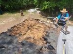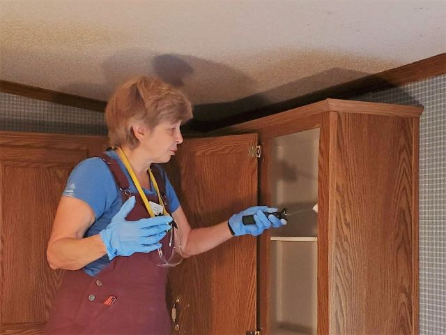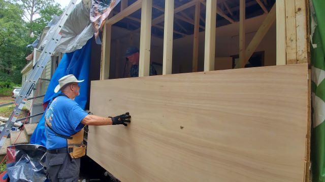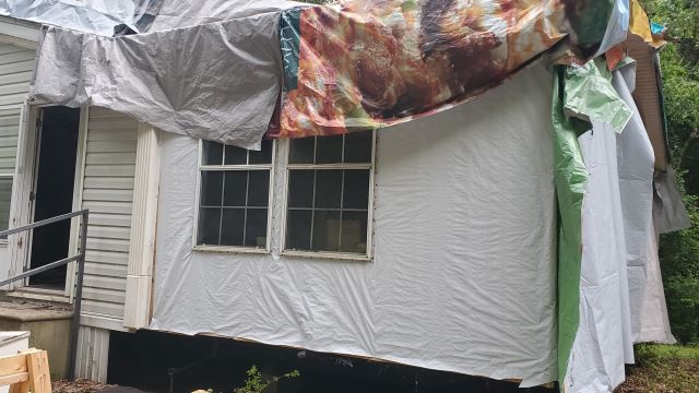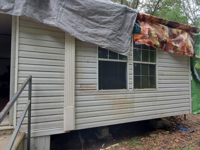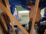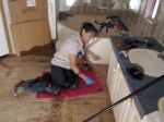 Gumby got a rest this week. We didn’t have to be very flexible because we worked on the trailer all week as expected. The master bedroom is coming together. We all worked at doing different things at different times and helping each other wherever we were needed at the time. The rotten subfloor was removed, and all the floor framing was reinforced as needed and the subfloor replaced. The new exterior wall was built with new studs, new top and bottom plates and new sheathing installed, the windows were reinstalled and the vinyl siding was reinstalled. We began removing the roofing and decking and reinstalling the decking and got the area of the largest hole in the roof repaired. There is still a lot of roof work to be done. The kitchen cabinets were scrubbed, sanitized and the interior painted. The other two bedrooms walls were cleaned. The walls in both baths were washed down, and the hall bathtub and surround were scrubbed and sanitized. There were also hundreds of staples and tack strips removed from the flooring.