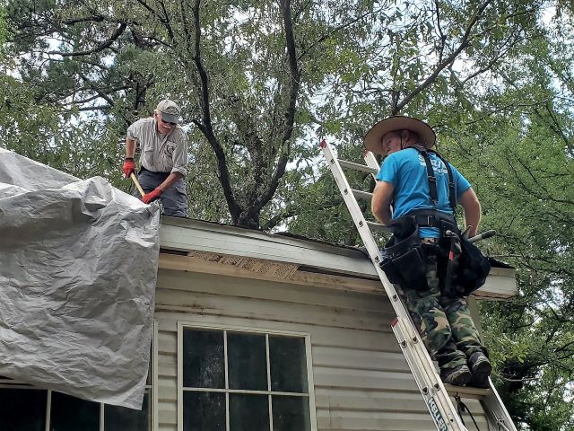 Wednesday morning we were able to go to the location were the agency will be moving the trailer and see the condition of the home that was destroyed by the storm. We also got to meet our homeowner. He is such a sweet man, in his seventies. His home was in the direct path of the tornado that destroyed so many homes in the Soso community. The home was built by his grandparents and he has wonderful memories there. He is currently removing the last of his belongings which will be placed in storage. The agency plans to have the fire department burn the house (very sad for him) and then after the pad is prepared, the trailer we are repairing will be moved in. The trailer will look very nice in its new setting.