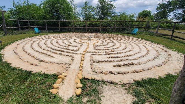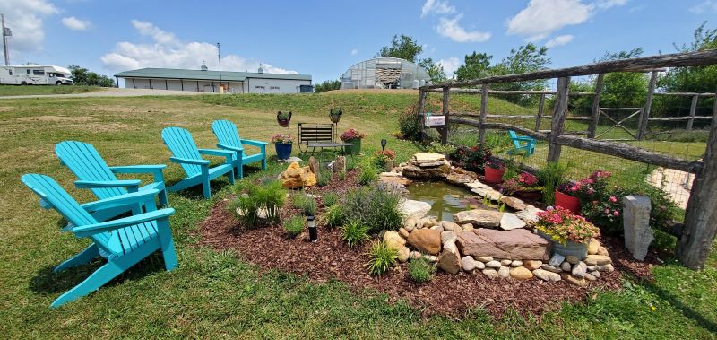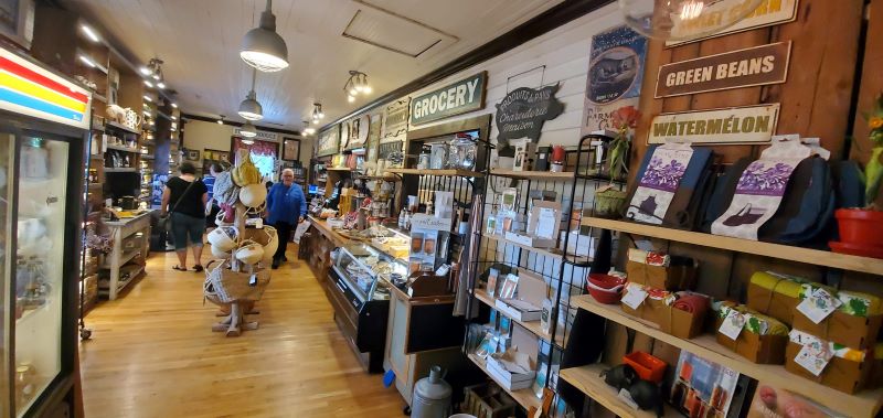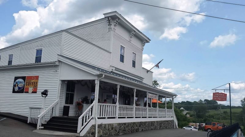 Saturday morning we left Crossville, TN driving east on I-40 and then north on I-81 to Draper, Virginia.  A new state for us.  We don’t fill in a state on our RVing map until we have spent the night in the RV there.  Saturday night qualified us to count Virginia.  Draper is a tiny little community just off I-81.  Draper Mercantile is a Harvest Hosts (HH) site and was a delight.  We wanted to get there before it closed at 3:00 pm because they announced after we made our arrangements that they would be closed on Sunday for Independence Day, and we wanted to visit all the shops and restaurant.  We arrived about 1:00 which gave us time to have a quick lunch at the Mercantile restaurant and then explore.  We each had hot sandwiches which were very good and added some of their chocolate/caramel/pecan fudge for dessert.  We love to find out of the way, interesting places that we would have never known about.  Harvest Hosts is a great resource for finding those locations.  Of course, most of the hosts have shops where you can purchase some of their products – produce, jellies, alpaca wool socks etc. and we always like to support the local small businesses so for us it’s really not free camping. Here we bought some fig jam and some of their branded salsa.  We parked at the Merc Farm about ¼ mile from the restaurant and shops.  At the farm there was a labyrinth, a fish pond surrounded by wonderful Adirondack chairs for relaxing, and some chickens that provided us some fresh eggs.  The farm sits up on a hill and the views from there are so beautiful. The people were all so welcoming and fun. Sunday morning we visited the Draper UMC and have never received a more warm welcome and from a church with less than 20 in attendance.  Sunday was also their first Sunday with their new pastor.  We had a great time visiting with the mostly elderly congregation and meeting their fairly young new preacher.