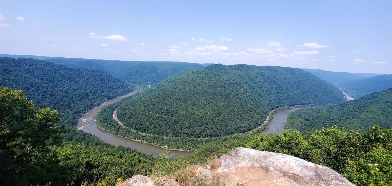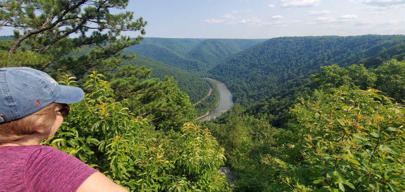 We woke to another beautiful day Monday in Draper, VA. We had a leisurely breakfast, reviewed our route plan for the day and readied Fred for travel. We knew it was going to be a short driving day and couldn’t check into our next campground before 1:00 so we were in no hurry. We headed back to I-81 and had a beautiful drive to Beaver, WV to the Little Beaver State Park. We weren’t expecting it, but we drove through two tunnels straight though the base of two mountains on I-77. We have been told that they aren’t mountains because we are on a plateau but they sure look like mountains to us. Little Beaver SP is about 15 min from the south end of New River Gorge National Park, our newest National Park and the purpose for our visit here. We got Fred parked and setup quickly. We have a great fully shaded site that we are enjoying since the temperatures are back in the 80’s. Fred is so much easier to keep cool in the shade.