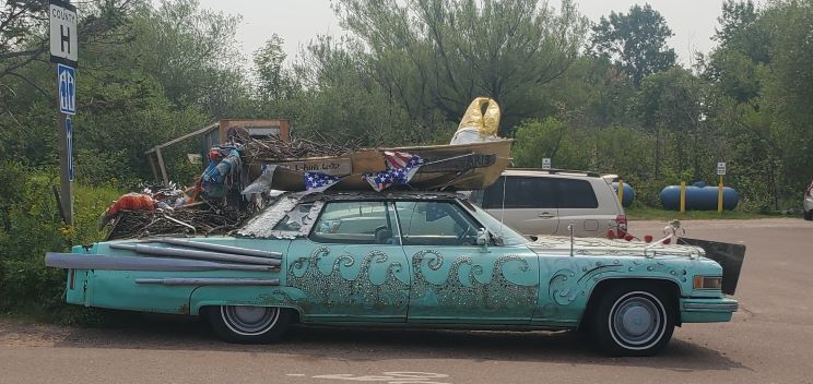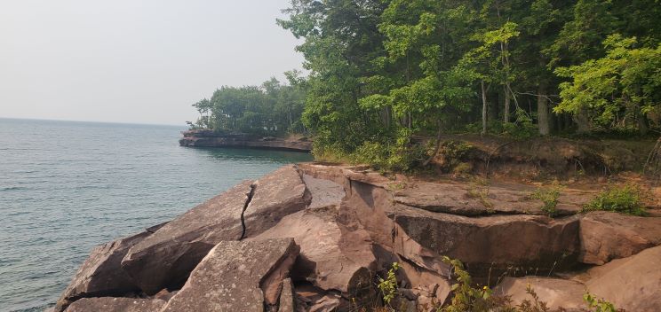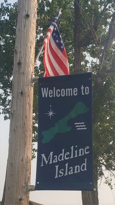 This morning we were again up early to drive back over to Bayfield to catch an early ferry to Madeline Island. We did not take Fred or the truck to the island although we could – for enough money. We took the bikes. $47.00 for a round trip for the two of us and two bikes. Madeline Island is one of the 22 Apostle Islands but is not part of the National Lakeshore and the only inhabited island. You can take a boat to some of the other islands for camping or light house viewing (during non-Covid times). Madeline is the largest of the Apostle Islands at about fourteen miles long and three miles wide. There is a town park and state park on the island and a few restaurants, shops etc. and some beautiful homes. Vehicles are allowed on the island but didn’t seem necessary for us today. We rode about fourteen miles exploring. We explored the state park, and La Pointe, the little town where the ferry docks and had lunch at one of the restaurants – really good whitefish from Lake Superior. After returning to the Bayfield ferry dock and loading the bikes back in the truck, the first stop was, of course, for ice cream. Very good pecan praline ice cream. We then did some more exploring of the area and hiked one of the trails here at the campground that goes to the Washburn marina. The nice trail right along the lake shore was a good way to end another great day of seeing more of this beautiful country.