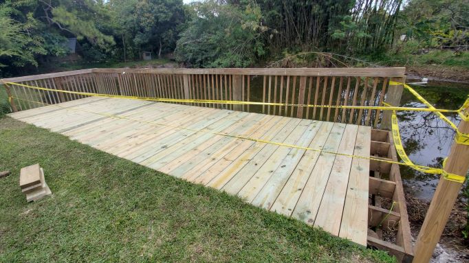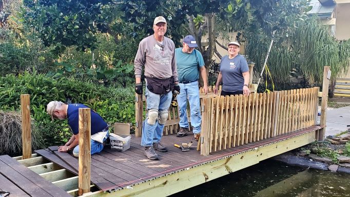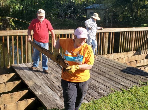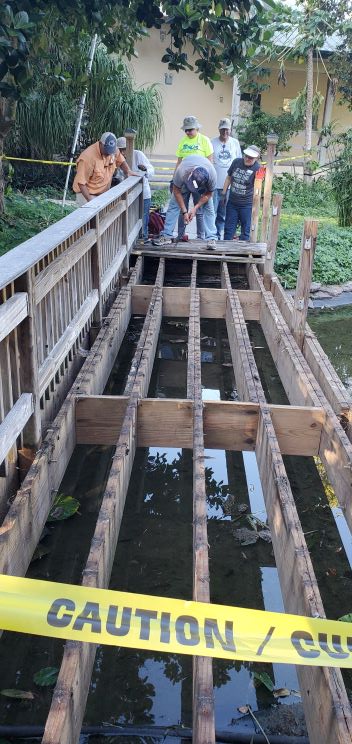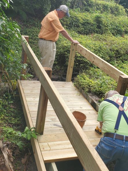 Also finished this week was the bridge between the visitor center and the library. A good portion of the team worked on that bridge at some point so I won’t list names for fear of missing someone. However, the final four that spent so much time on that project were Dan and Marlis, Phil and Steve. They did an excellent job rebuilding the bridge.