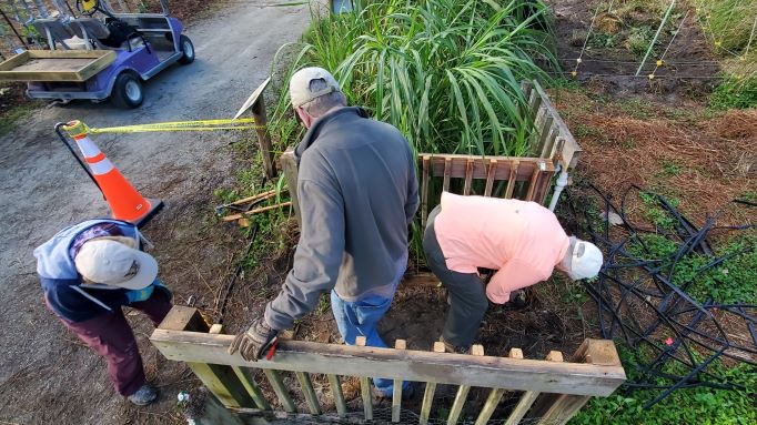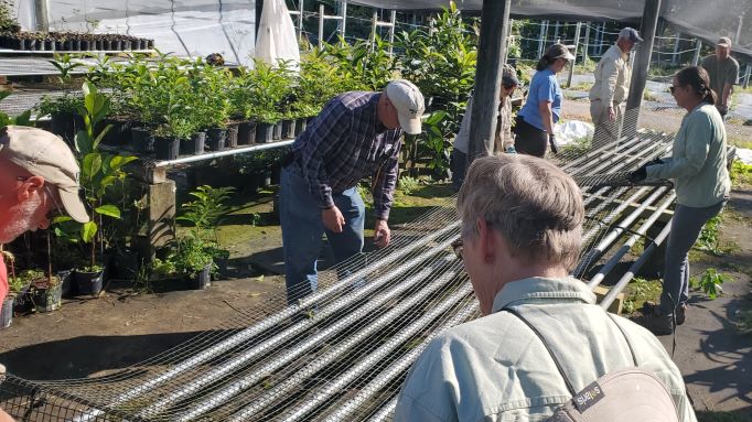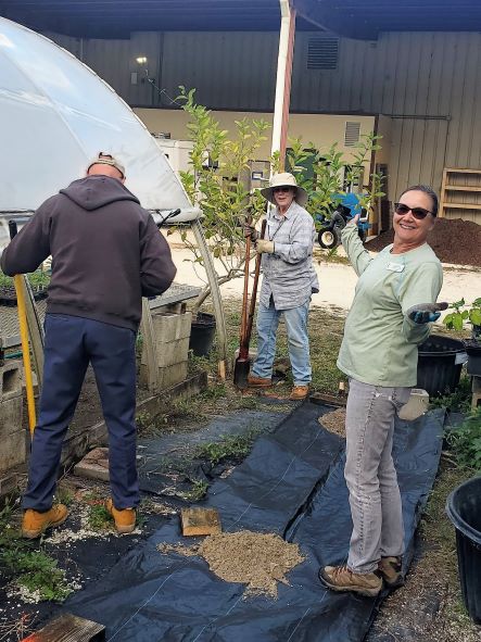 Almost everyone on the team worked on the new plant tables at some point. The highlight of that work this week was the moving the plants off the rusty old tables, removing the old table tops, then moving the new structures into place and placing the plants on the new tables. The last two tables were quite large and HEAVY! Eight of our twelve team members moved the first one and had to stop and put it on the ground and rest numerous times while moving from where they were built to the propagation area. We were all huffing and puffing and straining and didn’t know how we were going to move the last one into place. Susan enlisted the help of our two ECHO volunteers who worked with us on the bathroom. It was totally amazing. None of us could have imagined the difference it made to have two more helpers. It lightened the load for us all to a level we could much more easily handle. We all agreed there was a big lesson to be learned for all of us. It would even make a good sermon. More hands certainly made the work so much lighter.