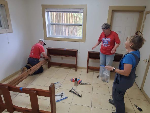 There was also more pressure washing this week again with most of us doing that at some time too. We were glad to be able to get the buildings looking better in preparation for the 40th birthday celebration for ECHO taking place in February. Wish we could be here for that celebration. Wednesday night we had a team dinner at the campground with every one contributing to the potluck. It was a time for the team and celebration for all we accomplished. Thursday we celebrated again with ECHO as they treated us to a Chick-Fil-A luncheon. Another special time with the team and our ECHO friends. This was one of those projects where it’s very had to say goodbye to everyone. But it had to occur and we left Riverside Campground this morning and arrived in Tampa shortly before lunch.