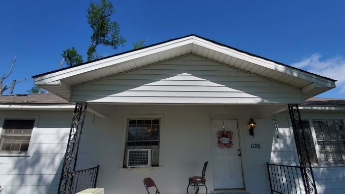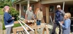 The remainder of the week the entire team was at the Todd house. Based on the weather forecast we thought Tuesday would be the best day to avoid rain and paint the exterior of the house. Wow, the entire team jumped on that project and completed the entire house. We were all very tired at the end of that day. Wednesday there was some touch up painting and we decided to paint the front door and porch ceiling. We also began the siding. This house was picked up by the tornado and moved 3 inches. As a result, the brick on the lower portion of the house cracked and had to be removed. We are covering the area previously bricked, with vinyl siding. By Thursday afternoon, all but the top row on the back was completed. One of the garage doors had all but the top row replaced. Jim, Dale and Dee also did a great job using the sheet metal brake and replacing the damaged fascia in several areas. Even though we have not quite completed the Todd house we did the Bible presentation while we still had a lot of the team present. We also did the presentation at one of the open house houses on Thursday morning. Always such a sweet and happy time when people are finally back in their homes.