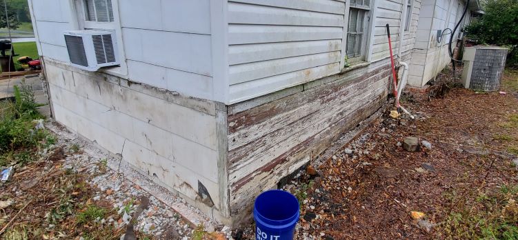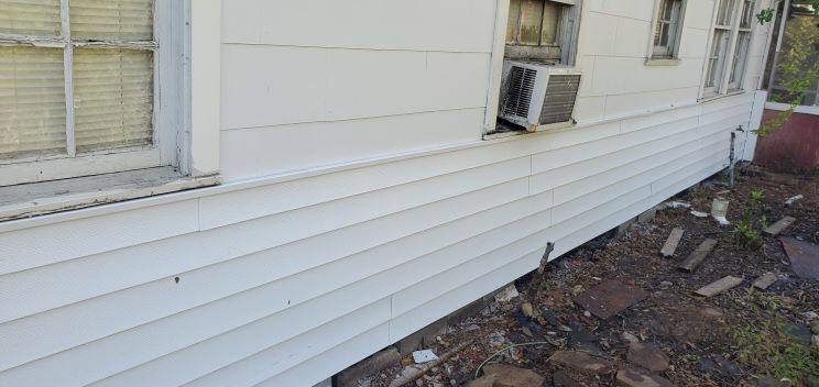 This brick will be replaced by vinyl siding.