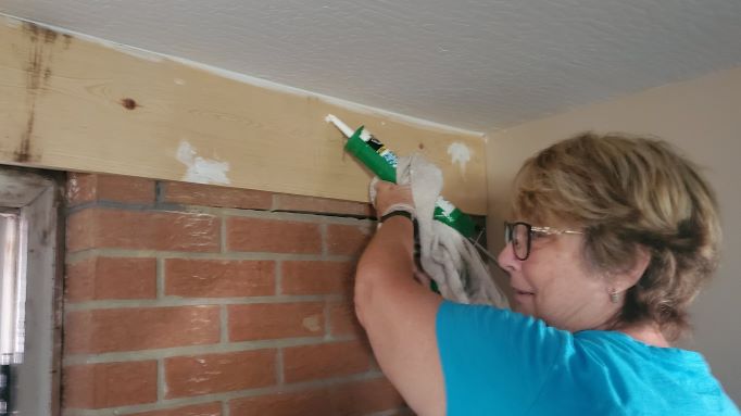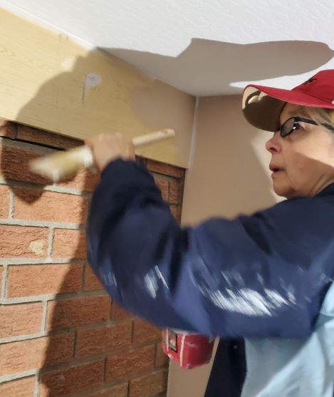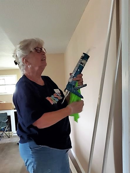 The rest of the team continued the work at the Henry house that lost its roof to the tornado, so of course there was also lots of water damage. There, the team worked on trim, doors, replacing broken windows, caulking and painting Monday thru Wednesday.