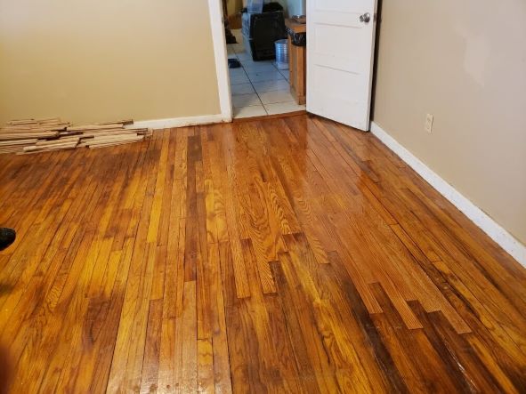 The finished hardwood floor patch looks great!