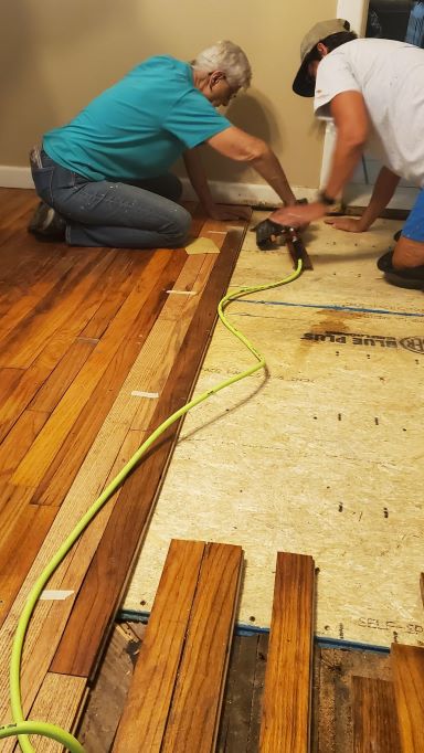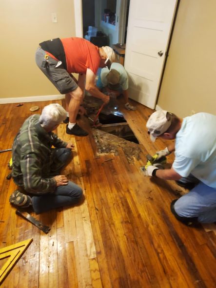 We said goodbye to Suzanne Saturday morning and took over as leaders for the Laurel team. We greeted team members Saturday and Sunday with our team meeting Sunday afternoon. Monday we began another week of work on homes damaged by the December 2019 and April 2020 tornadoes that hit Laurel, MS. We had a team of 12 NOMADS who were hard workers and so much fun. We had one couple, Deb and Dave who were on their first project. We hope they enjoyed themselves as much as we enjoyed getting to know them. The rest of the team, Jim and Dee, Sandy and Steve, Stel and Jodi, and Anne and Dale are all experienced NOMADS. The hardest work for us as leaders was to keep work and supplies lined up for them all and then just stand back and watch them get the work done. Monday, Tuesday, and Wednesday we had Sandy, Steve, Anne and Dale at the Todd house working to replace/repair oak flooring that was water damaged. They also had to replace subflooring. What a huge job that was completed Thursday, and it looks great! While there they also removed a lot of brick from the exterior that will be replaced with siding next week.