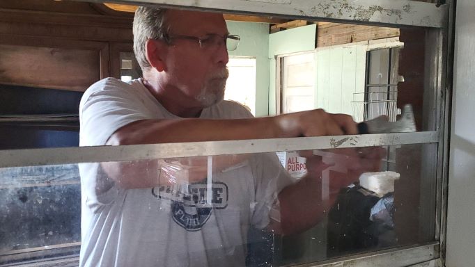 Jim installing new window panes