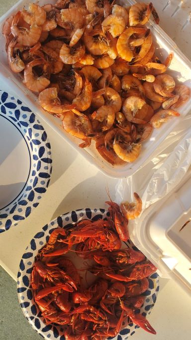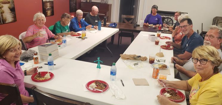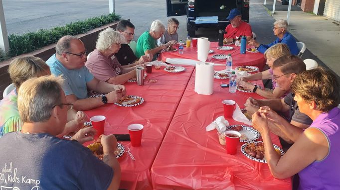 The evenings this week were not dull either. On Monday, Jennifer from Laurel First UMC fed us again. This week it was a delicious shrimp boil with some crawfish added for those who had never eaten them before.