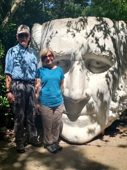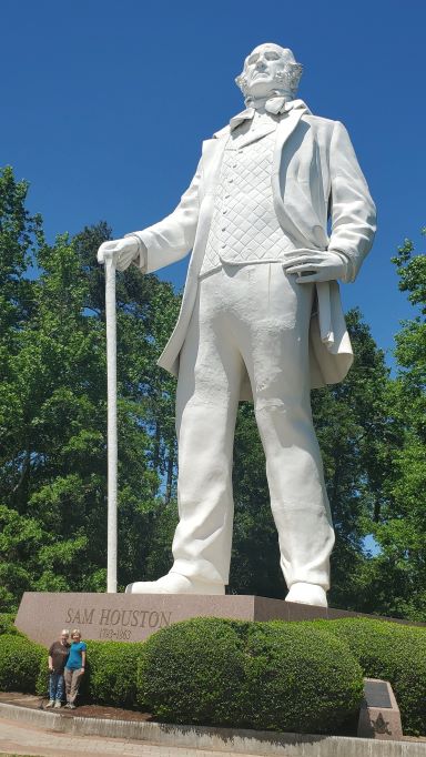 Friday we drove back to Alabama arriving back at our home base in the early afternoon. Saturday was haircut and switch vehicle day and Sunday we headed out again, but this time in BB (Beyond Blessed, the B van) retracing our trip from Friday for the first few hours. In Meridian, MS we then took I-20 West rather than heading south on 59 which would have taken us back to Laurel. We spent a nice and quiet night at the LA Welcome Center and then arrived in Shreveport, LA on Monday. There we had a wonderfully fun visit with our dear friends Mark and Lisa. We were so excited to see them that we forgot to take any pictures. We had wonderful food, a tour of the city and most importantly, time with our friends. Tuesday, we continued west into Texas, arriving in Conroe, to visit with two more NOMADS friends, Carol and Dave. There we again had too much wonderful food, a visit to a nearby state park, and Sam Houston’s huge statue, but most importantly time with our dear friends. Such a blessing to visit with these four! Refreshed our souls.