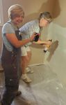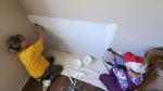 Installing a piece of drywall to cover the hole left for the plumber…