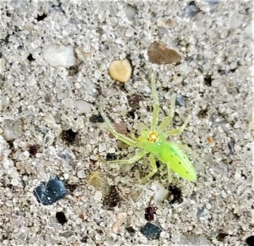 Previous Image Next Image green lynx spider A green lynx spider made itself at home on our picnic table.