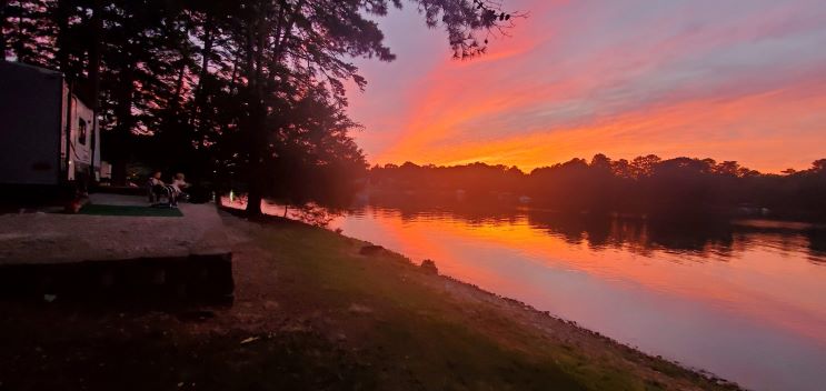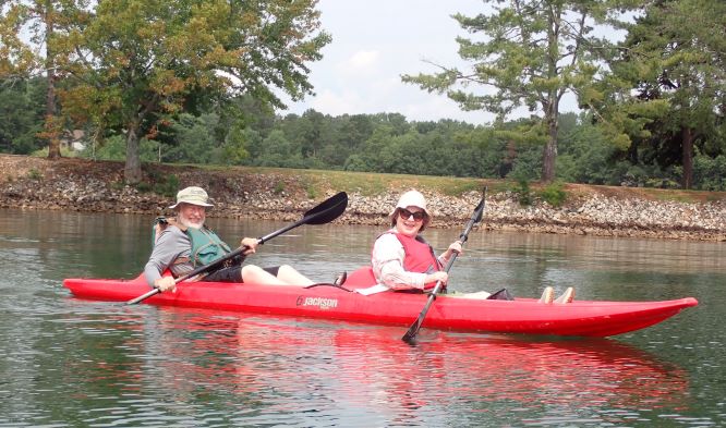As we were preparing to leave Maggie Valley, one of Fred’s slides wouldn’t retract. Max was able to bypass the motor and get some help to push the slide in so that we could drive Fred and meet Randy and Debra for a few days of fun at South Cove County RV park in Seneca, SC. There we had fun visiting, resting, kayaking and of course eating. We played mini golf for the first time in a very long time. Oasis Ranch mini golf was different than any we have played before. There were water hazards with large fish, sand traps and all sorts of curves, inclines, and dips. It was also nicely shaded and lots of fun.
