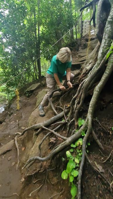 The trail to Soco Falls can be interesting. At least someone has left some ropes there to make it easier.