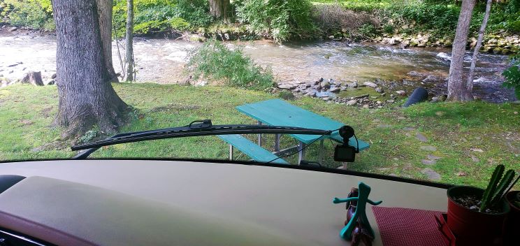 In Maggie Valley we stayed at Stonebridge RV Park. This is the “brochure” style picture of our site.
